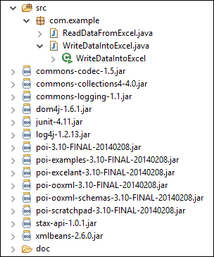 objExcelFile.writeExcel(System.getProperty("user.dir") + "\\doc", "Example.xlsx", "Data", valueToWrite);